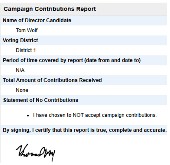 I want to represent all the members that are working hard to keep ahead of their own interests that don’t have time to keep tabs on what their electric co-op is doing. Just to be a solid conservative voice on their board of directors.